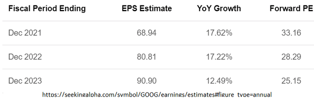 Even without making whatsoever special adjustments for Google Deject and Other Bets, Google seems fairly valued at current levels. Adjusting for these, which I think is advisable, suggests Google to be somewhat undervalued.